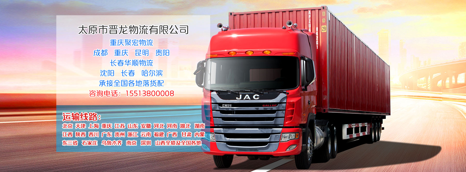 我們是一家集公路運(yùn)輸、倉儲(chǔ)配送為一體,垮區(qū)域、網(wǎng)絡(luò)、信息化、智能化現(xiàn)代化、人性化的物流企業(yè)。
